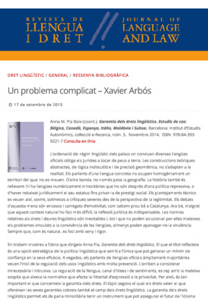 Arbós Marín, Xavier (RLD blog, 2015-09-17)En trobem mostres a l’obra que dirigeix Anna Pla, Garantia dels drets lingüístics L’ordenació del règim lingüístic dels països on conviuen diverses llengües oficials obliga els juristes a tocar de peus ... -